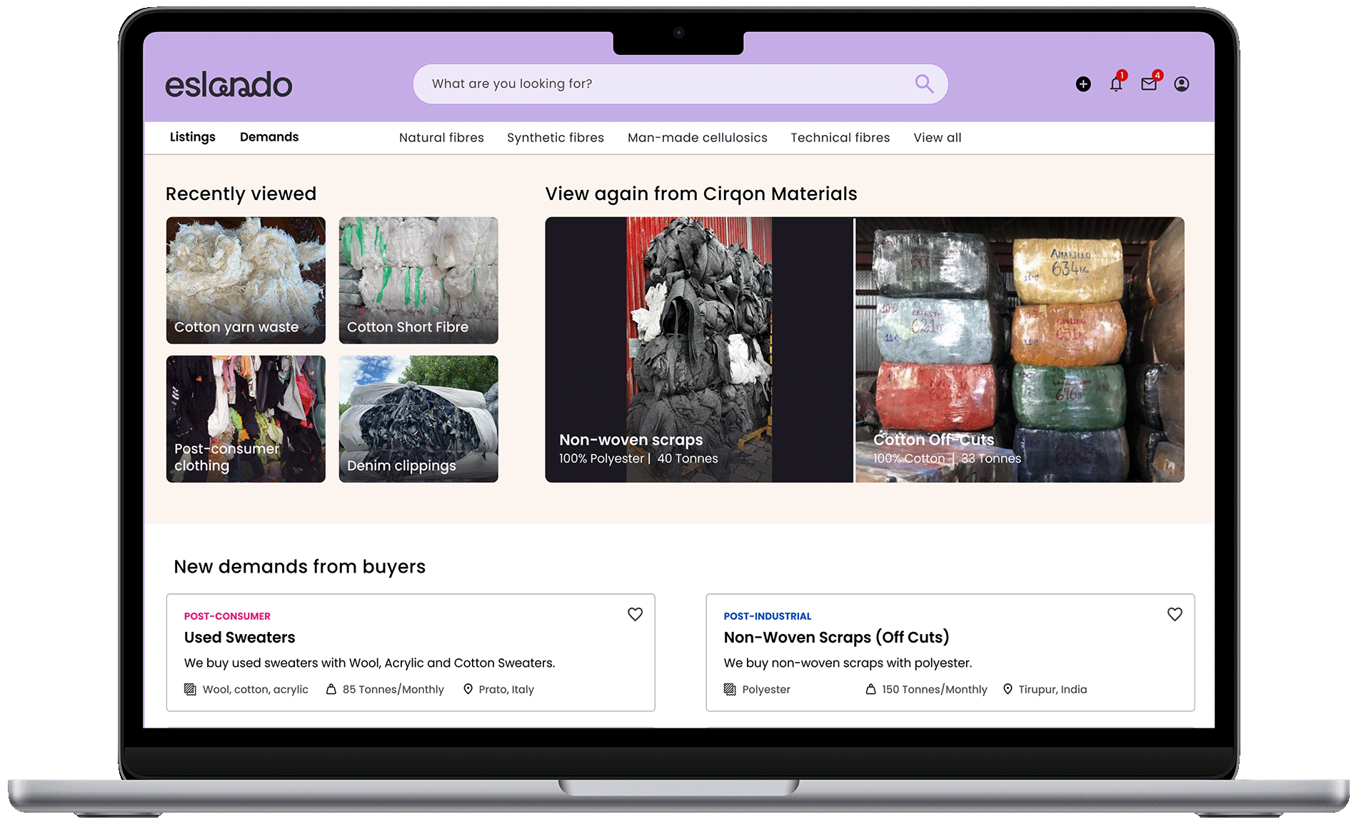 Connect with a wide network of vetted recyclers for your textile waste. Find the best buyers and optimise your sales on the Eslando platform.